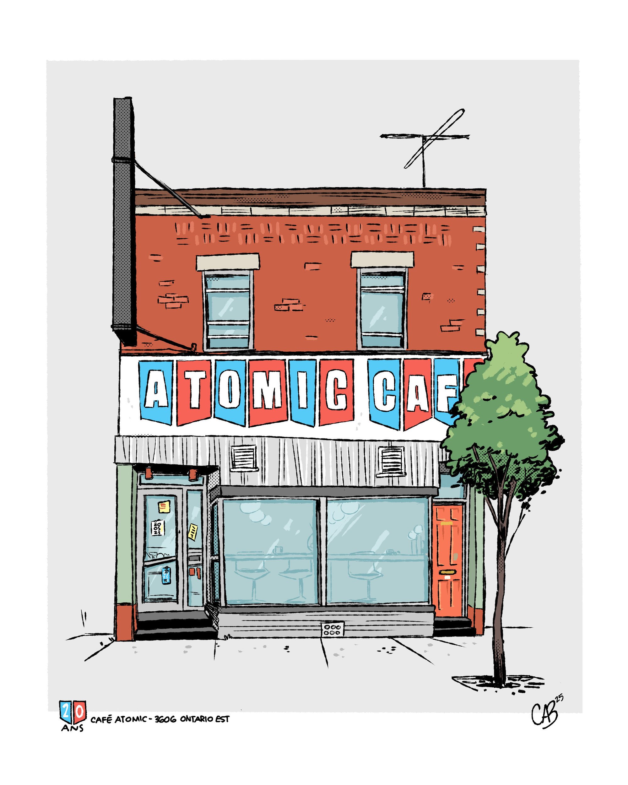 The Atomic Café in Hochelaga is celebrating its 20th anniversary in 2025! I did an updated, limited and numbered print run for the occasion.