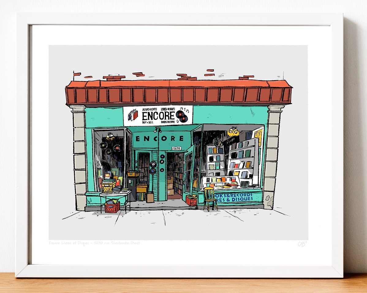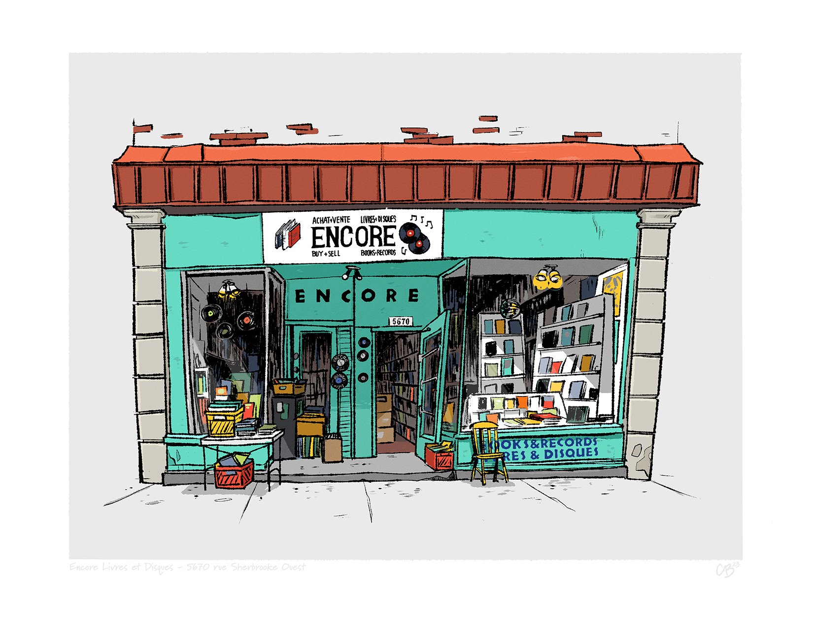 Print of the charming Encore Books and Records in NDG. Gotta love that great turquoise paint job.