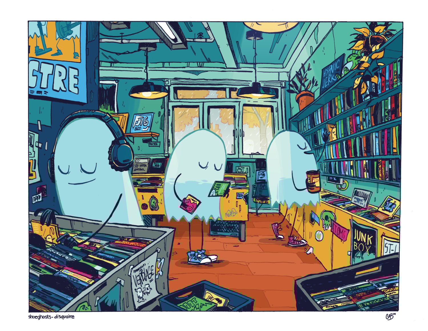 Un paquet de trois prints et deux auto-collants en vinyle mettant en vedette les fantômes les plus chill de tous les temps. Ils sont dans un band et pour vrai, ils sont pas pires! Les prints accompagnent bien une collections de disques et les auto-collants donnent une petite vibe hantée à tout ce qui les touchent. Les prints sont disponibles séparément dans la boutique mais acheter le bundle est la seule façon d'avoir les stickers!